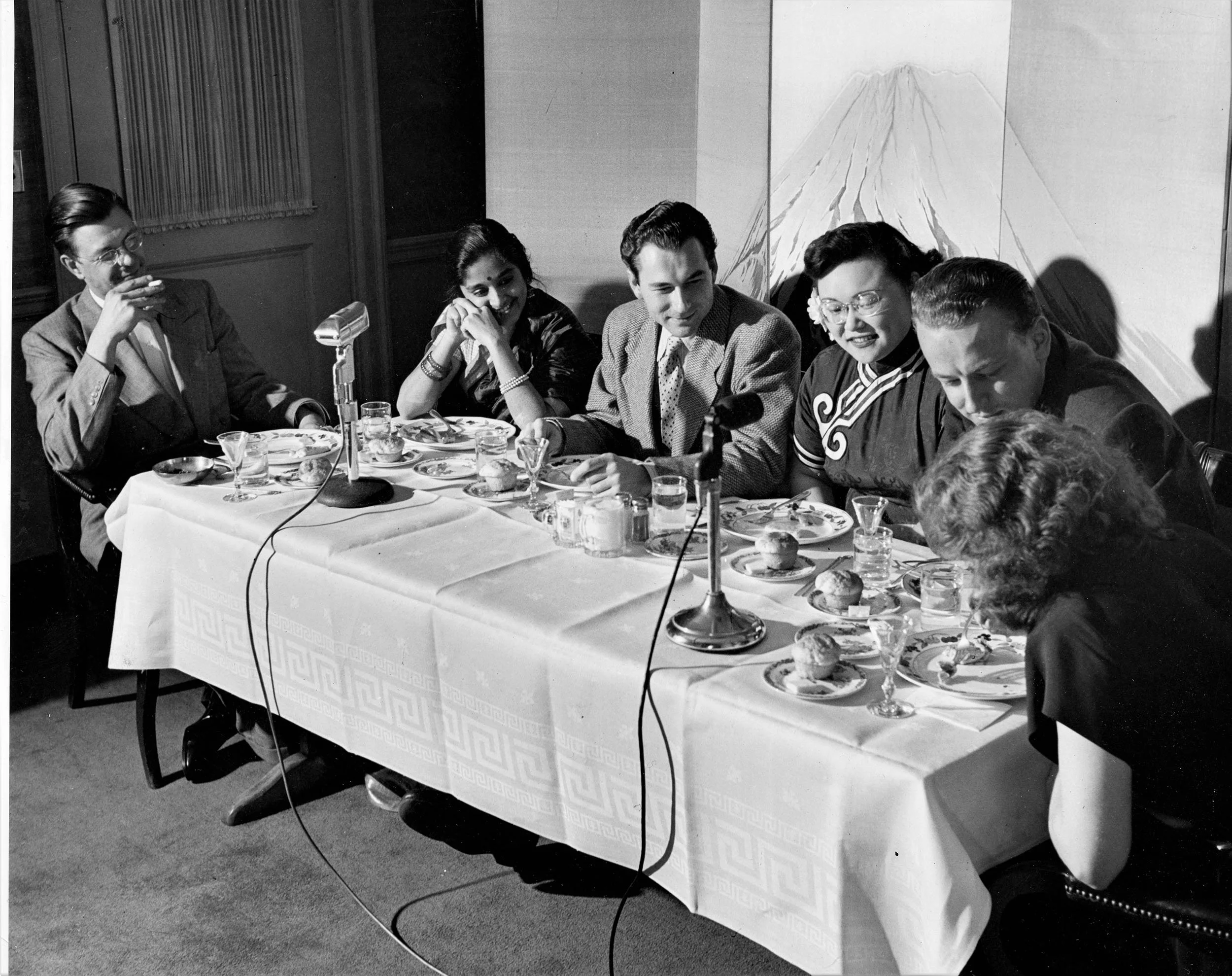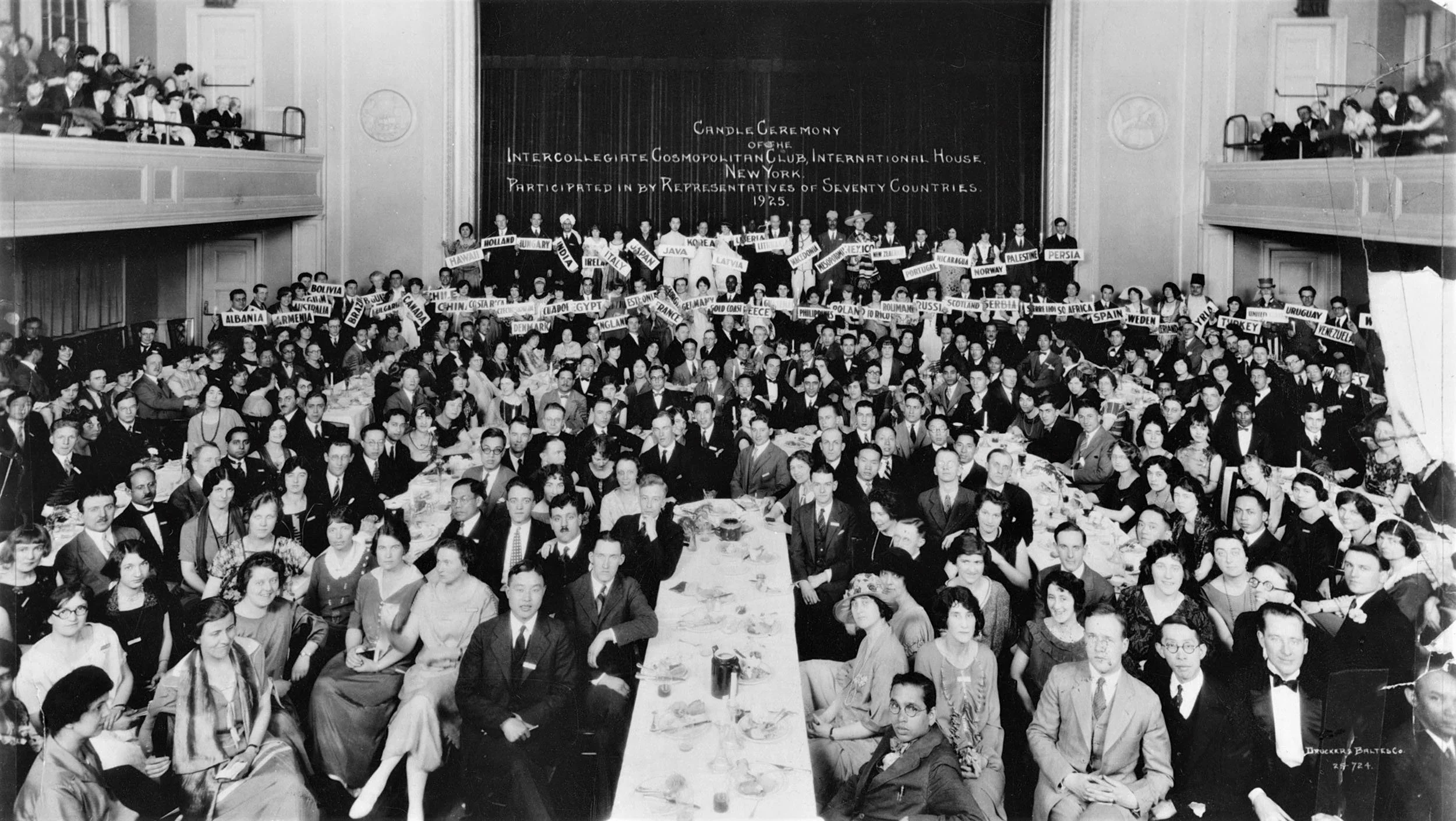 During the Candlelight Sunday Supper, a candle is passed from resident to resident, symbolizing mutual goodwill and understanding. First Candlelight Sunday Supper at I-House, 1925.