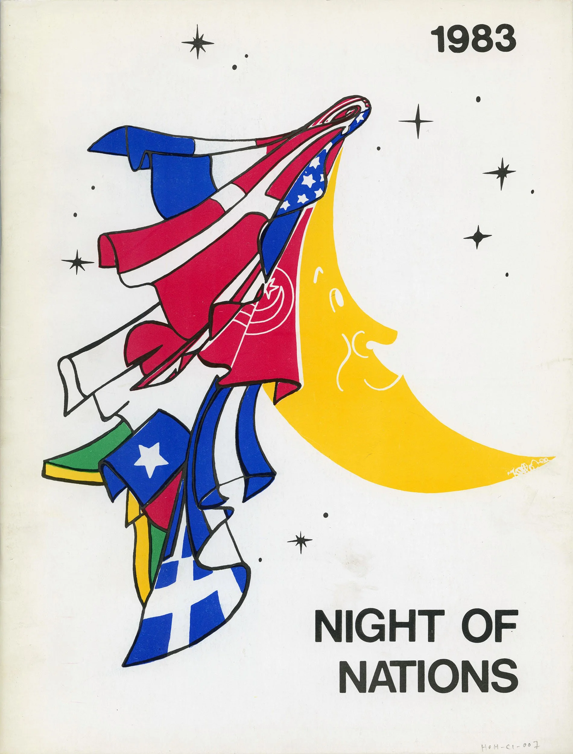 All Nations’ predecessor, Night of Nations, was a multi-faceted and dynamic event for residents to experience different cultures through performances, displays, and cuisine. Program, 1983.