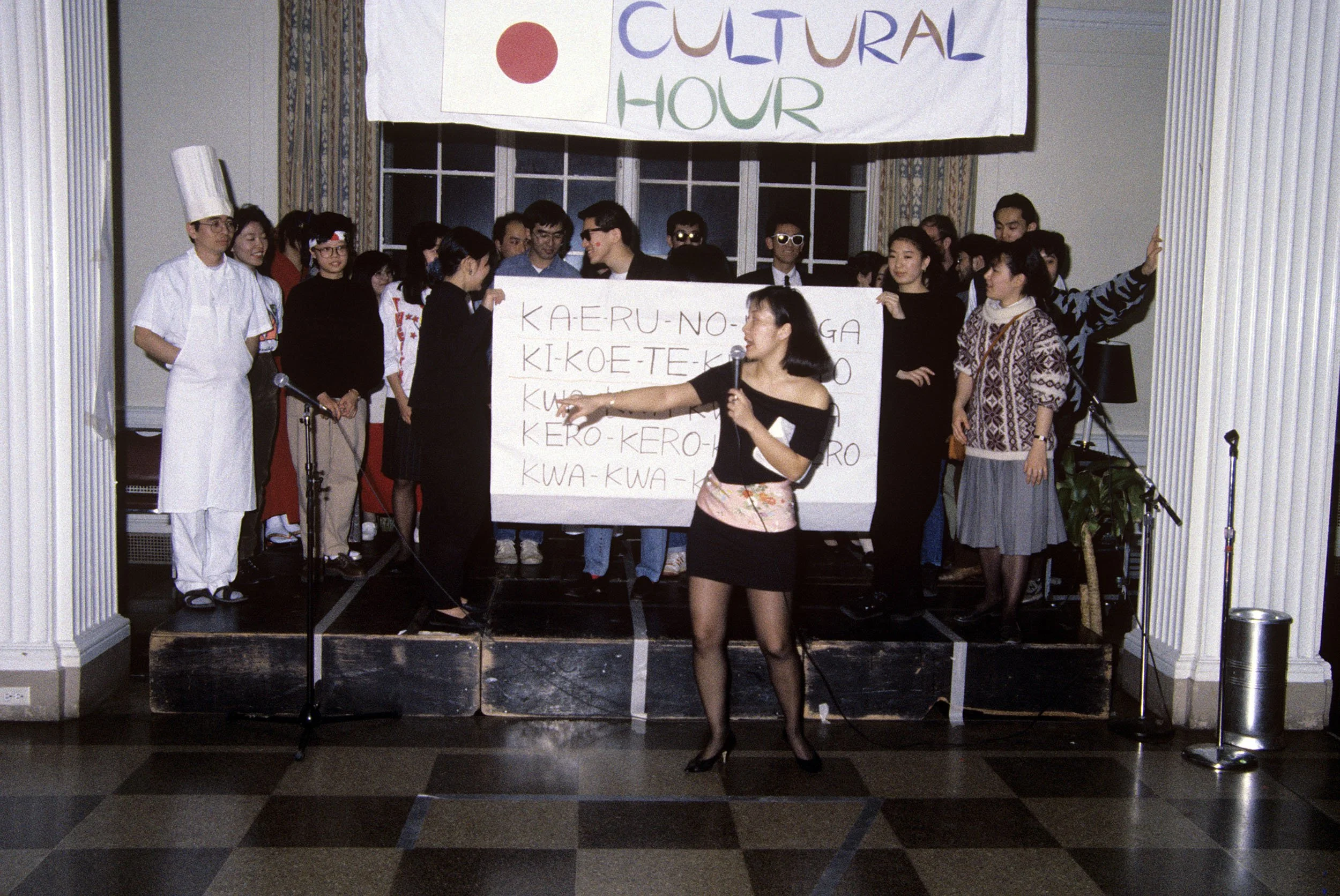 Initially called National Nights, Cultural Hours allow residents to celebrate and share their cultures and identities with the I-House community. Japanese Cultural Hour, 1990.